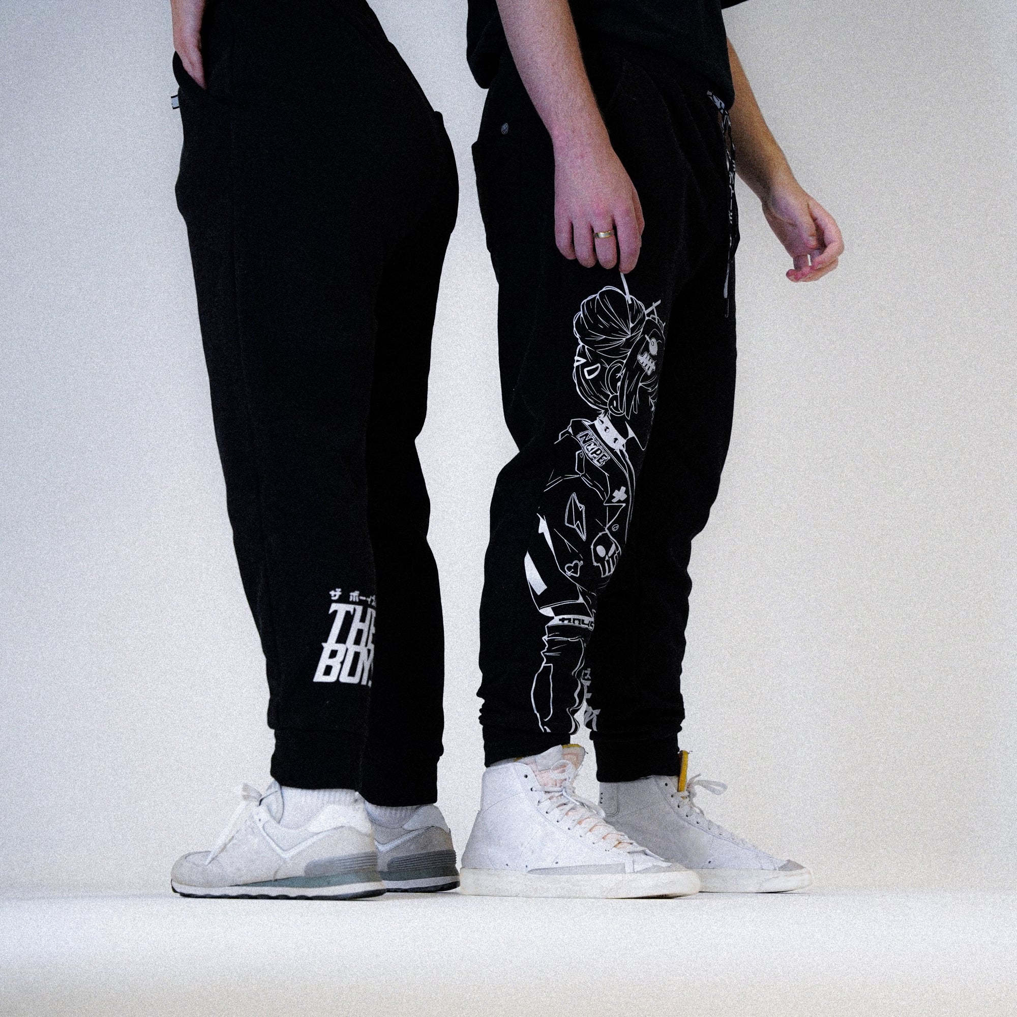 - Soft & comfy black joggers featuring the original EM-J Sucker Punch graphics printed on the front and back pant legs with Japanese character woven drawstrings, signature silicon smiley patch on front and The Boys woven label on back pocket.